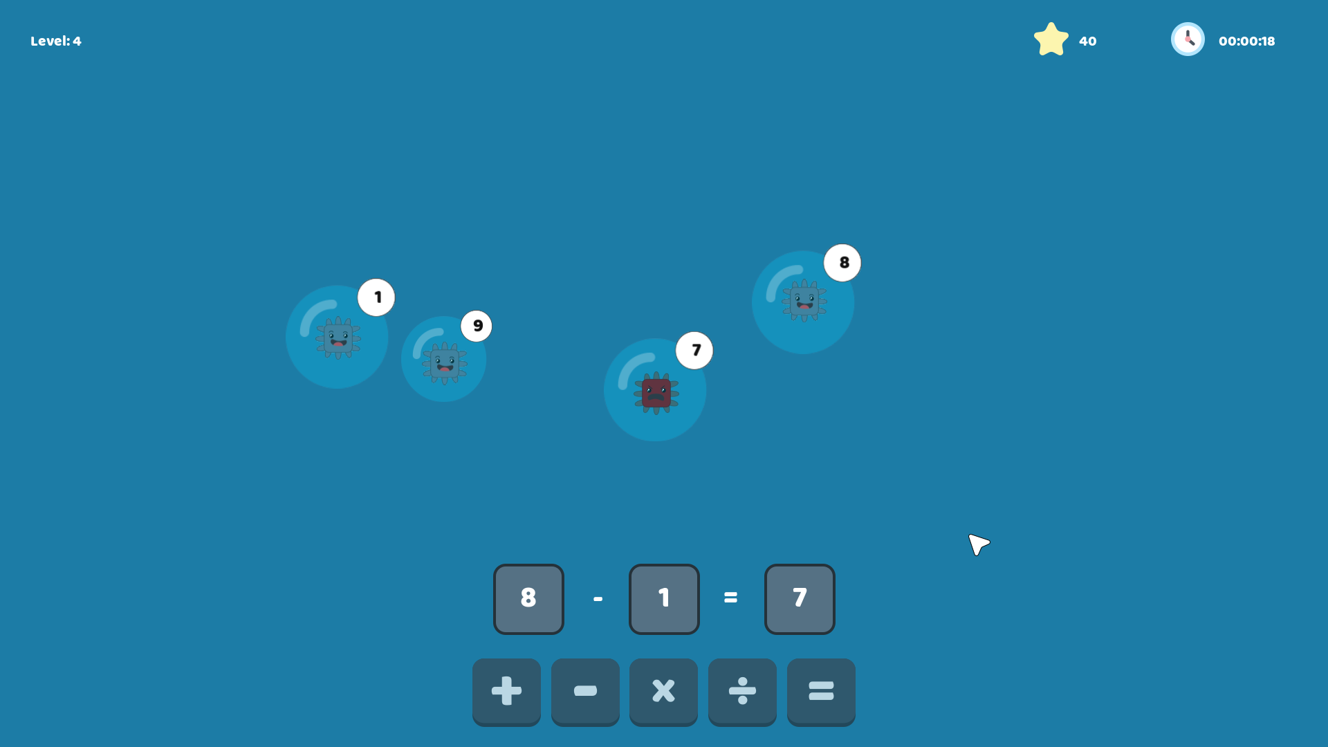 A fast-paced arithmetic game where you control molecular cells and use quick math to defeat invading red cells